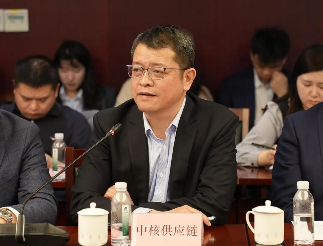 中核(上海)供应链管理有限公司副总经理吴健介绍了中核集团供应链的情况,通过数字化应用提升效率和预测能力,优化采购流程并加强供应链建设。