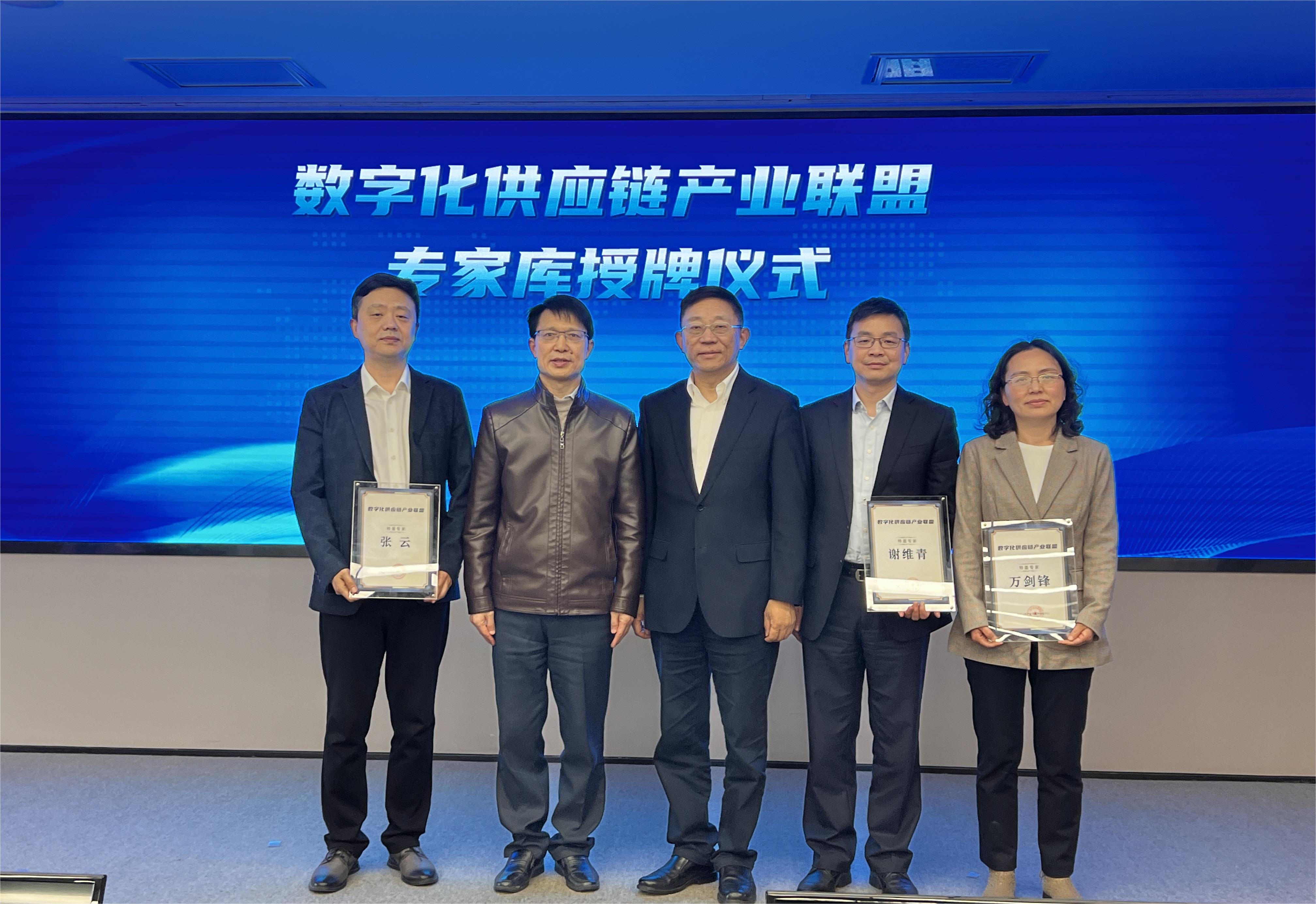 会上举行了联盟专家库授牌仪式。上海市经济和信息化委员会生产性服务业处调研员罗椿桥、上海长三角产业互联网促进中心理事长戴佩华为中核供应链董事长张云、申能商服总经理谢维青、上航工业资源共享平台总监万剑锋颁发了联盟专家证书。