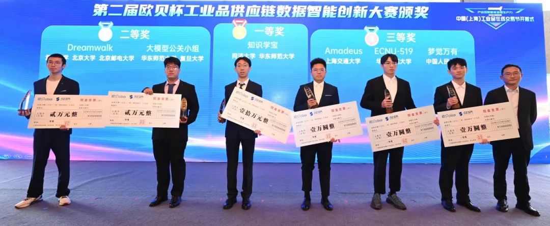 欧冶工业品股份有限公司与上海市电子商务行业协会共同主办的第二届“欧贝杯”工业品供应链数据智能创新大赛,积极探索“AI+产业”垂类大模型赋能工业经济的数智化路径,从本科生至博士后的200多位高校师生,围绕工业品电商领域的实际场景和行业大数据等多个赛道参与角逐。大赛一等奖奖金10万元。会上,欧冶工业品副总裁毛立华为来自同济大学、华东师范大学、北京大学、上海交通大学、复旦大学、中国人民大学、北京邮电大学等高校的6支参赛队伍颁奖。