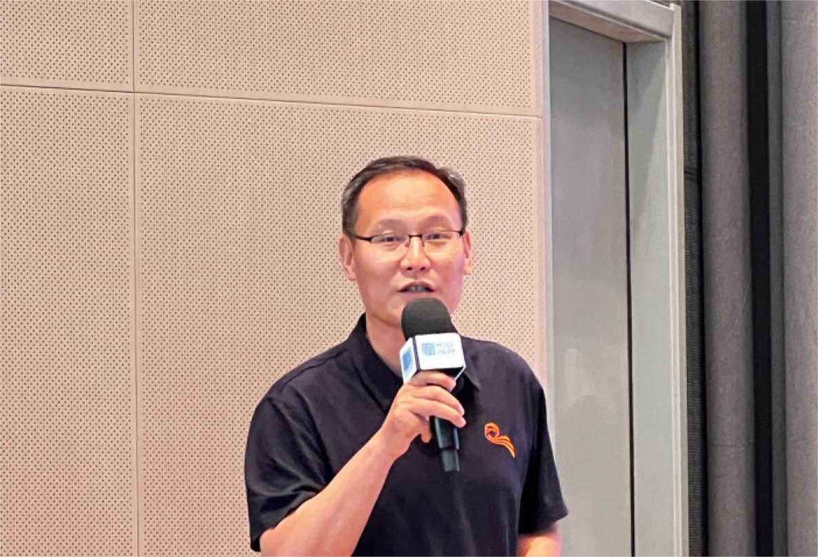 上海市宝山区罗店镇人民政府副镇长刘传宝介绍罗店镇情况。他指出如今的罗店镇,有持续集聚的特色产业、数智融合的企业发展、创新服务的营商环境,共同助力罗店经济高质量发展,擦亮“金罗店”的金字招牌。