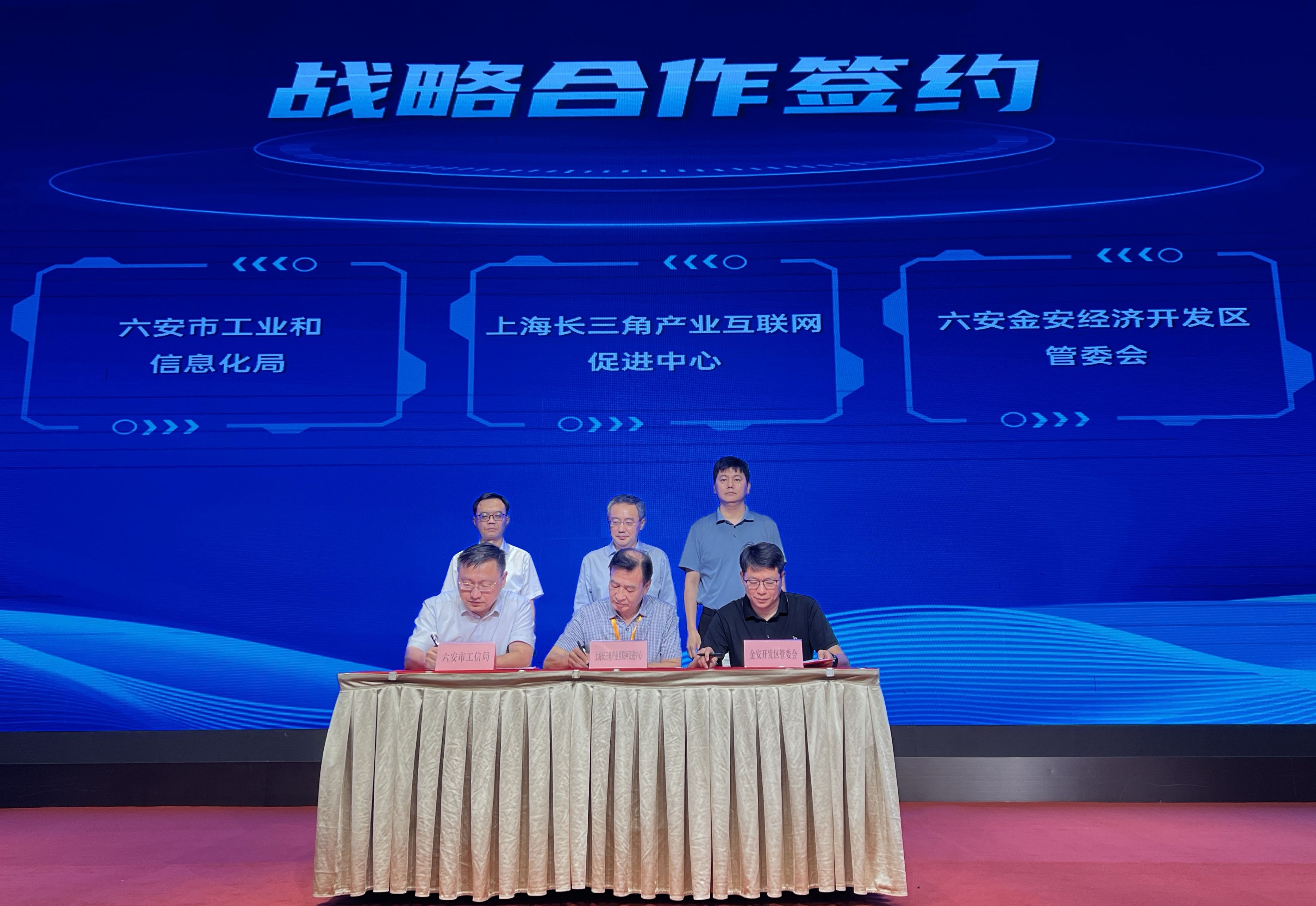 会上,六安市工业和信息化局局长黄胜红、六安金安经济开发区管委会主任林松、上海长三角产业互联网促进中心副主任孙应敏签署战略合作协议,上海长三角产业互联网促进中心将在六安设立“六安市数字化转型赋能工作站”,助力六安制造业数字化提质增效,推进产业互联网向专业化、智慧化、高端化发展,上海市政府合作交流办副主任强鹏程、安徽省人民政府驻上海办事处副主任李秋淮、六安市委常委、副市长王红见证签约仪式并为工作站揭牌。