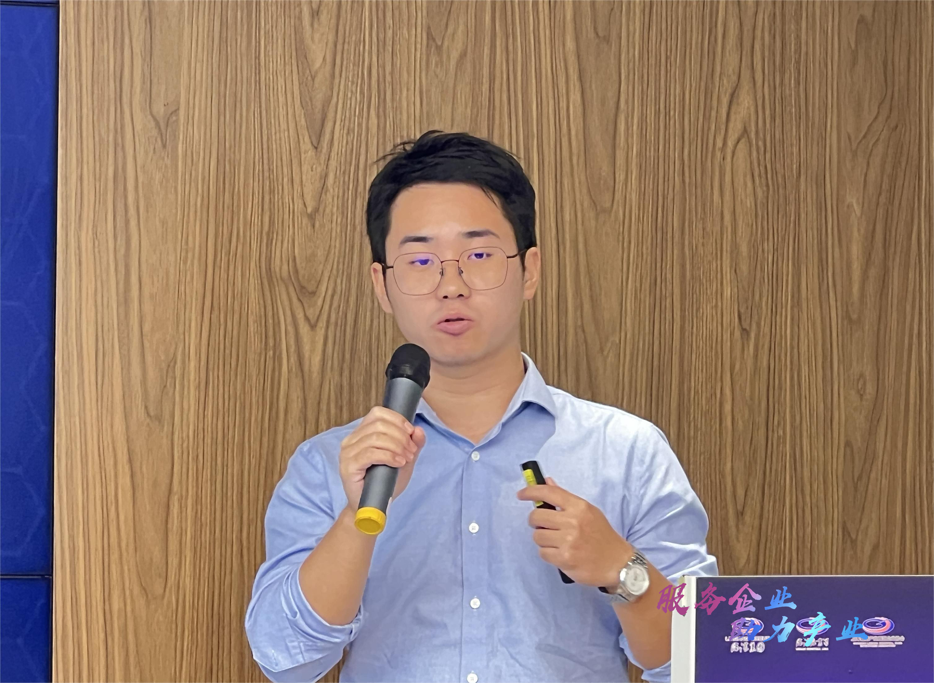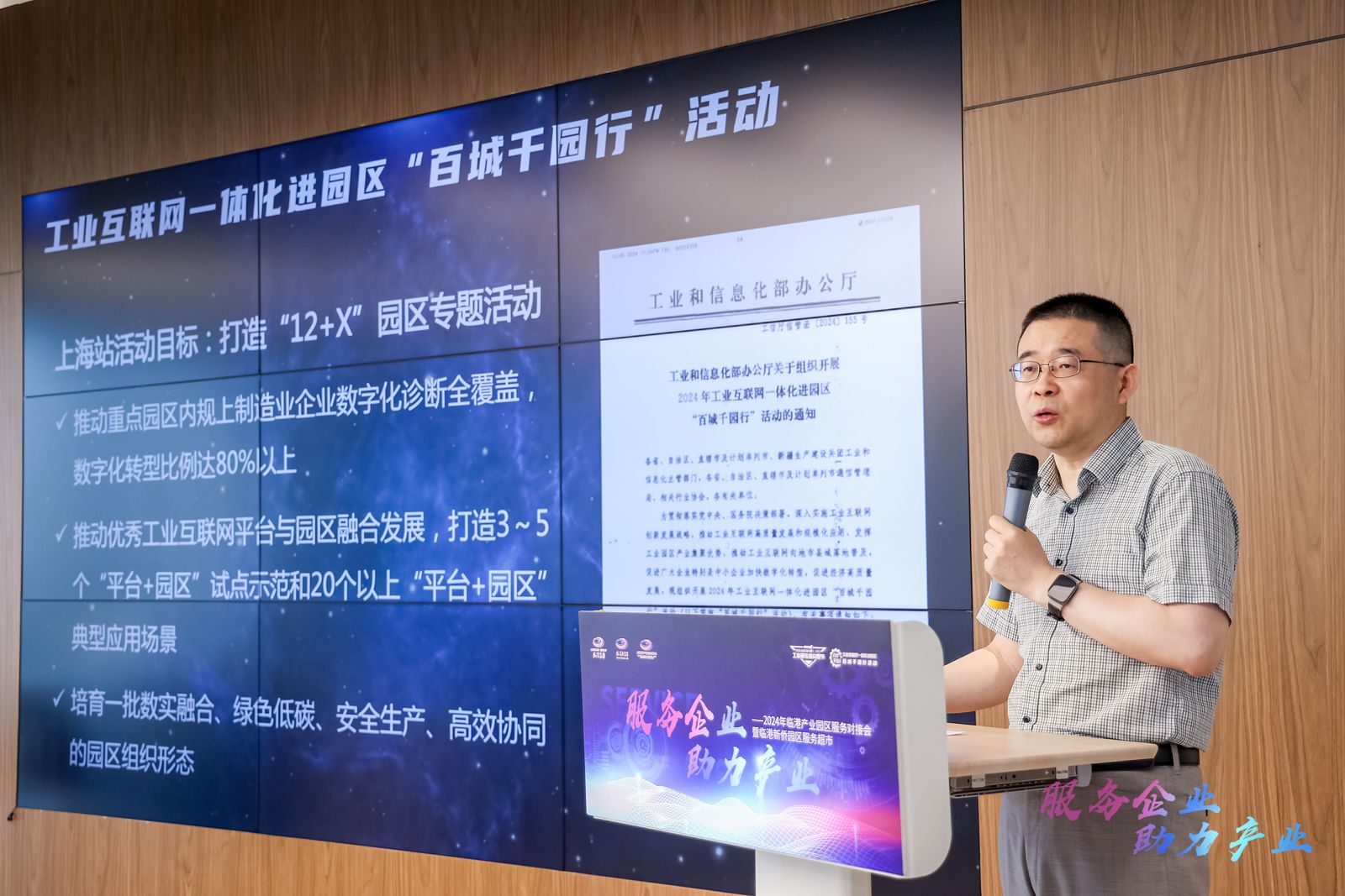 上海产业互联网有限公司副总裁梁峙峰介绍交易节及百城千园行活动情况,交易节和百城千园行活动通过发挥工业园区产业集聚优势,以惠企服务包和供给侧资源池为载体,推动产业互联网、工业互联网落地普及,助力制造业新质生产力发展。