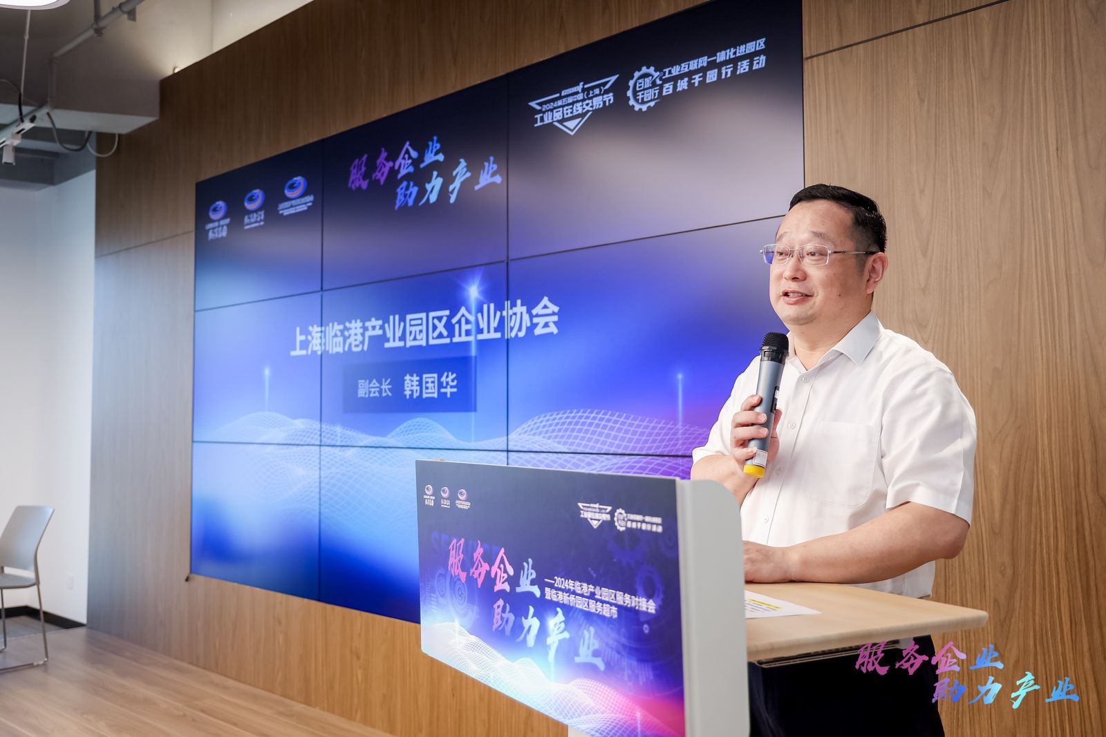 上海临港产业园区企业协会副会长韩国华为活动致辞,他强调,临港新片区致力于制造业数字化、绿色化融合发展,以产业链、工厂、应用场景等为主要载体,发挥数字技术创新赋能作用,促进高端制造业产业集群能级提升,推动临港新片区建设成为世界级高端制造业产业集群。