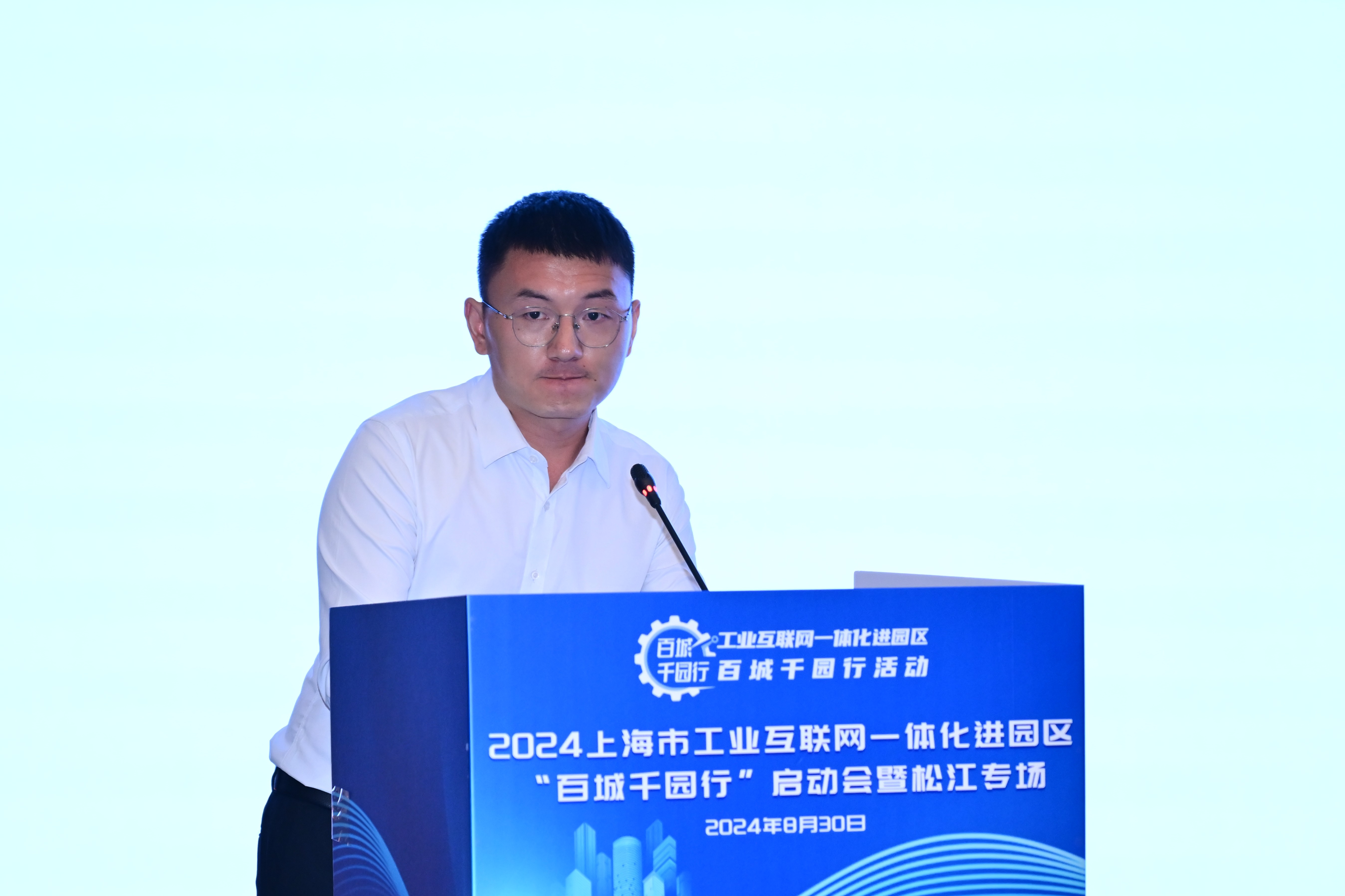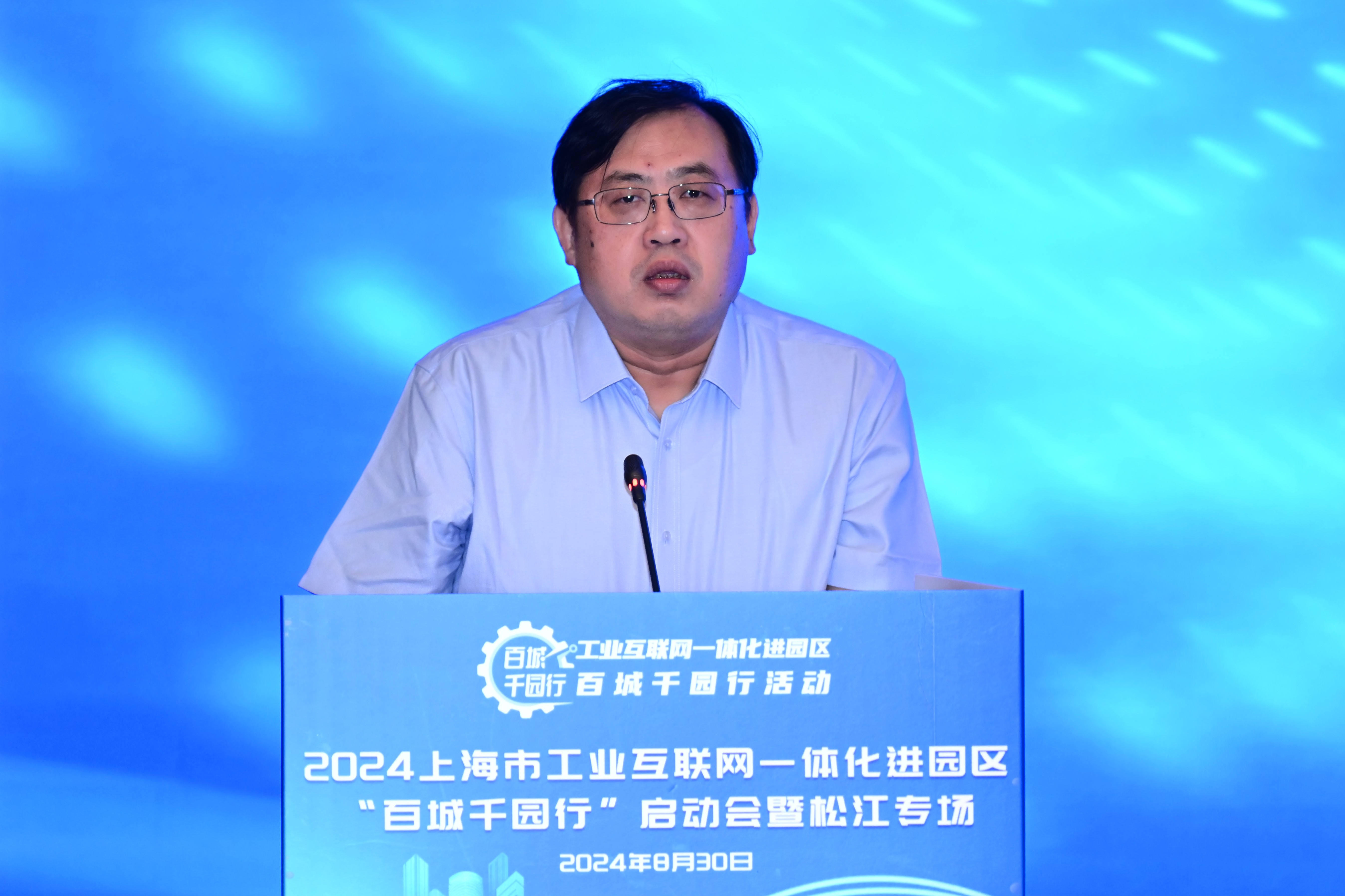 会上,市经信委总工程师裘薇、市工业互联网协会会长张锡平、市通信管理局临港通信管理办公室主任秦岭、中国电信上海分公司副总经理王立宾、松江区数据局局长张磊、松江区经委副主任胡晓彬、上海长三角产业互联网促进中心副理事长潘敏捷、中国信通院工物所上海运营中心主任徐为共同启动了2024上海市工业互联网一体化进园区“百城千园行”活动。